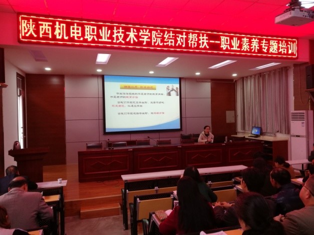 10月25日,为了落实加强结对帮扶,进一步实施产学研一体化基地建设,我院张琴副院长与工会副主席,一同赴眉县职教中心,进行了《新时代下教师应具备的职业素养》专题讲座,该校150余名教师参加培训,会后进行了座谈。