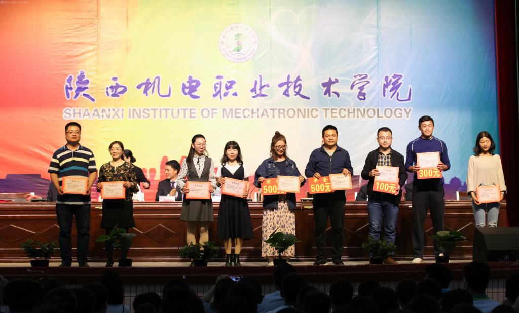 大会在庄严的国歌声中拉开帷幕,党委副书记、纪委书记邓新治宣读关于授予2017年度共青团工作优秀奖和先进团组织的决定;党委委员、院长助理赵争东宣读关于表彰2017-2018年度先进集体及先进个人的决定;学工部部长朱云洁宣读关于表彰2017年“学宪法讲宪法”演讲比赛优秀学生、优秀指导教师和优秀组织单位的决定;学生处关于表彰2018年“星级”文明宿舍的决定;教务处处长王建斌宣读陕西机电职业技术学院关于表彰奖励2018年微课教学比赛获奖教师的决定,并进行了颁奖。14会计动漫高职班喻思思同学代表受表彰的学生进行了发言。