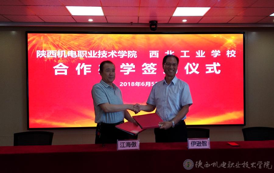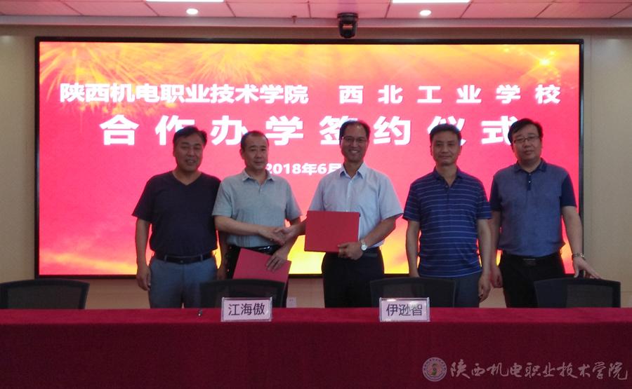 2018年6月5日,陕西机电职业技术学院与西北工业学校在学院汽车机电大楼四楼多功能厅举行中高职集团化办学签约仪式。学院党委书记、院长伊逊智,副院长张新堂,西北工业学校校长江海傲等出席签约仪式。