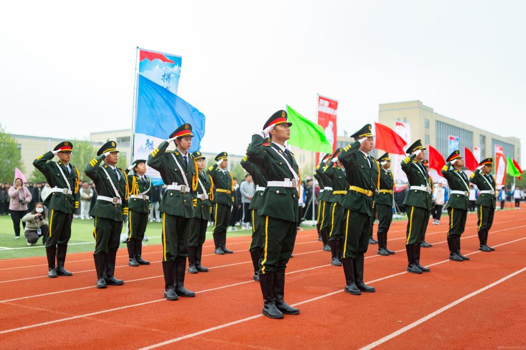 开幕式现场举行了庄重的升旗仪式。在雄壮嘹亮的国歌声中,五星红旗冉冉升起。随后,学校校旗和本届运动会会旗相继升起。