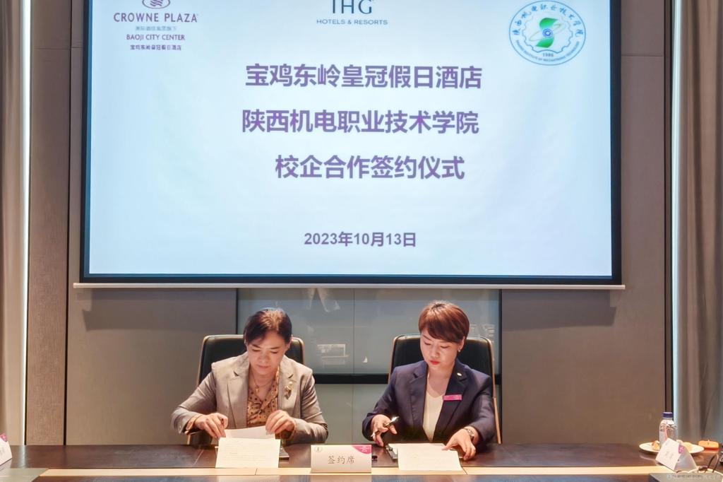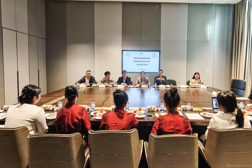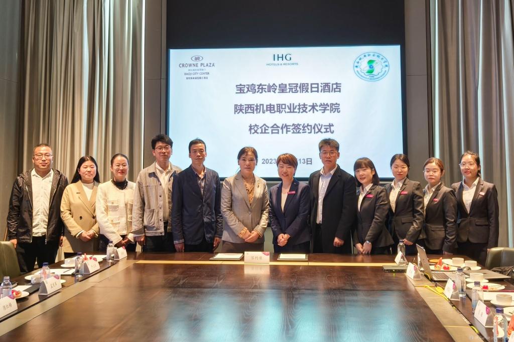 为进一步促进校企交流合作,拓宽毕业生就业渠道,促进我校毕业生高质量就业,10月13日下午,陕西机电职业技术学院党委副书记、纪委书记陈红梅带领经管与艺术学院党支部书记孟发军、院长杜海军、学工办主任郭世强以及系室主任、专职辅导员、任课老师等一行,前往宝鸡皇冠假日酒店访企拓岗,与酒店签订校企合作协议,并看望在酒店顶岗实习的经管与艺术学院2024届毕业生。宝鸡皇冠假日酒店人力资源总监刘洁等一行热情接待了陈红梅一行。