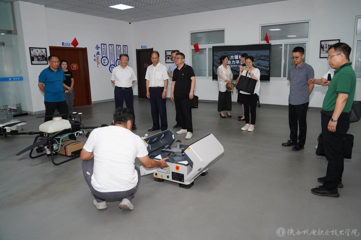会后,齐晓军一行参观了我校擀面皮产业学院、无人机产业学院、风标产业学院、智能制造学院实训室等地。