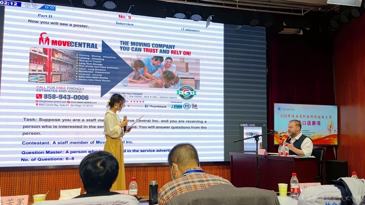 本届大赛由陕西省教育厅主办,西安铁路职业技术学院承办,高等教育出版社和外语教学与研究出版社联合协办。全省38所高职院校共计73名选手参加了比赛,其中包括英语专业组10人以及非英语专业63人。大赛完全对接国赛,分别由“中国故事”“职场描述”“职场交流”“职场辩论”四个环节组成。