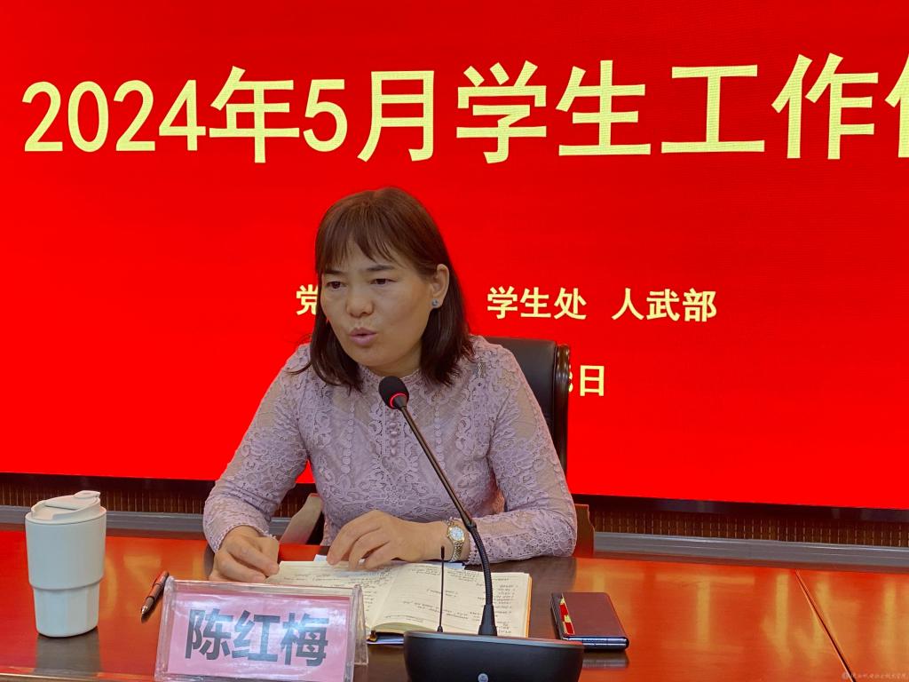 5月28日下午,我校5月学生工作例会在蟠龙校区博学楼会议室召开。党委副书记、纪委书记陈红梅参加,会议由党委学工部部长、学生处处长王建斌主持。